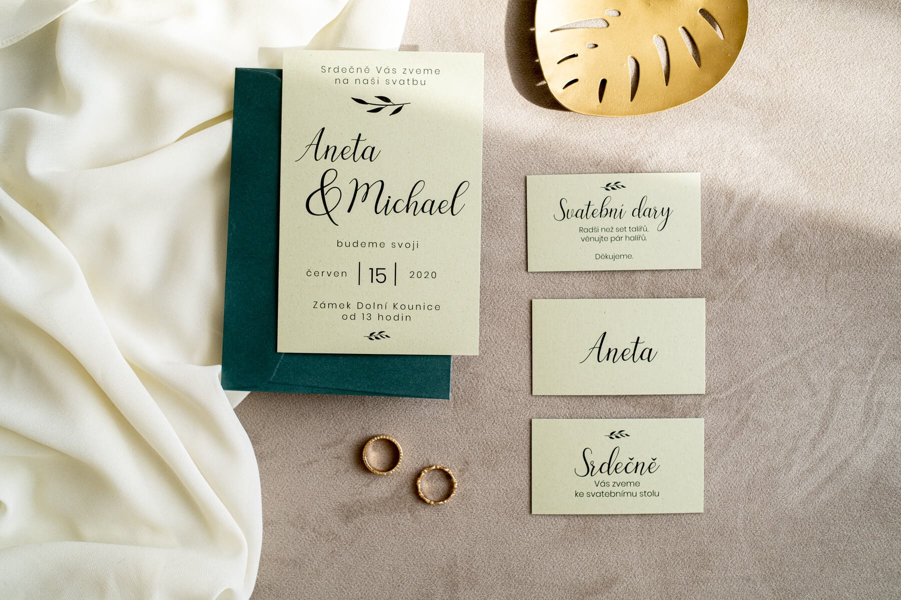 Ke všem papírovým oznámením nabízíme další svatební tiskoviny ve stejném designu. Svatbu tak můžete mít od začátku až do konce perfektně sladěnou.