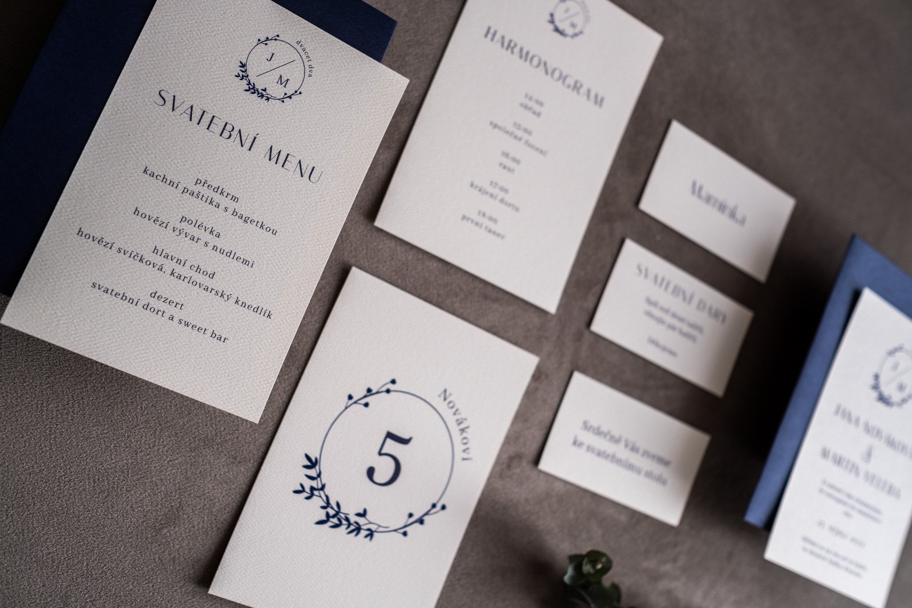 Ke všem papírovým oznámením nabízíme další svatební tiskoviny ve stejném designu. Svatbu tak můžete mít od začátku až do konce perfektně sladěnou.